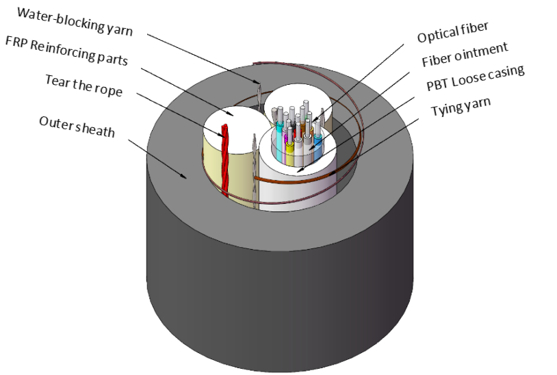 ④ ऑप्टिकल केबल का क्रॉस-सेक्शन ड्राई वाटर-ब्लॉकिंग यार्न और तेल से भरे वाटर-ब्लॉकिंग को अपनाता है, जिसमें उत्कृष्ट वाटर-ब्लॉकिंग और नमी-प्रूफ प्रदर्शन होता है।