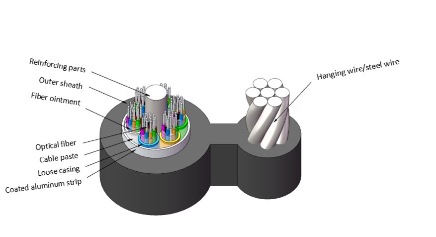 ऑप्टिकल केबल की संरचना सिंगल-मोड या मल्टी-मोड ऑप्टिकल फाइबर को एक ढीले ट्यूब में जलरोधक यौगिक से भरे उच्च मॉड्यूल प्लास्टिक से बनाने के लिए है।केबल कोर के केंद्र में एक धातु सुदृढीकरण घटक हैकुछ ऑप्टिकल केबलों के लिए कुछ कोर संख्याओं के साथ,ऑप्टिकल केबल की संरचना सिंगल-मोड या मल्टी-मोड ऑप्टिकल फाइबर को एक ढीले ट्यूब में जलरोधी यौगिक से भरे उच्च मॉड्यूल प्लास्टिक से बनाने के लिए हैएक पॉलीएथिलीन कुशन परत को बाहर निकाला जाता है और धातु के केंद्रीय सुदृढीकरण भाग के चारों ओर लपेटा जाता है।ढीले ट्यूबों (और भरने के तारों) एक कॉम्पैक्ट और गोल केबल कोर बनाने के लिए केंद्रीय सुदृढीकरण भाग के चारों ओर मुड़ रहे हैंकेबल कोर के अंदर के अंतराल को जल-अवरोधक यौगिक से भर दिया जाता है। एक एल्यूमीनियम-पॉलीथीन बंधे हुए आवरण को बाहर निकाला जाता है और बाहर लपेटा जाता है, और केबल बनाने के लिए स्टील स्ट्रैंड हैंगर जोड़े जाते हैं।